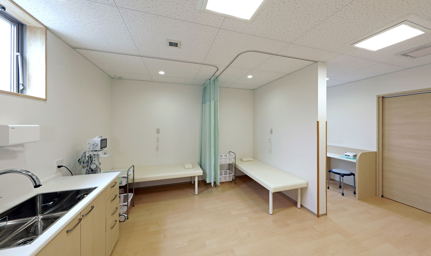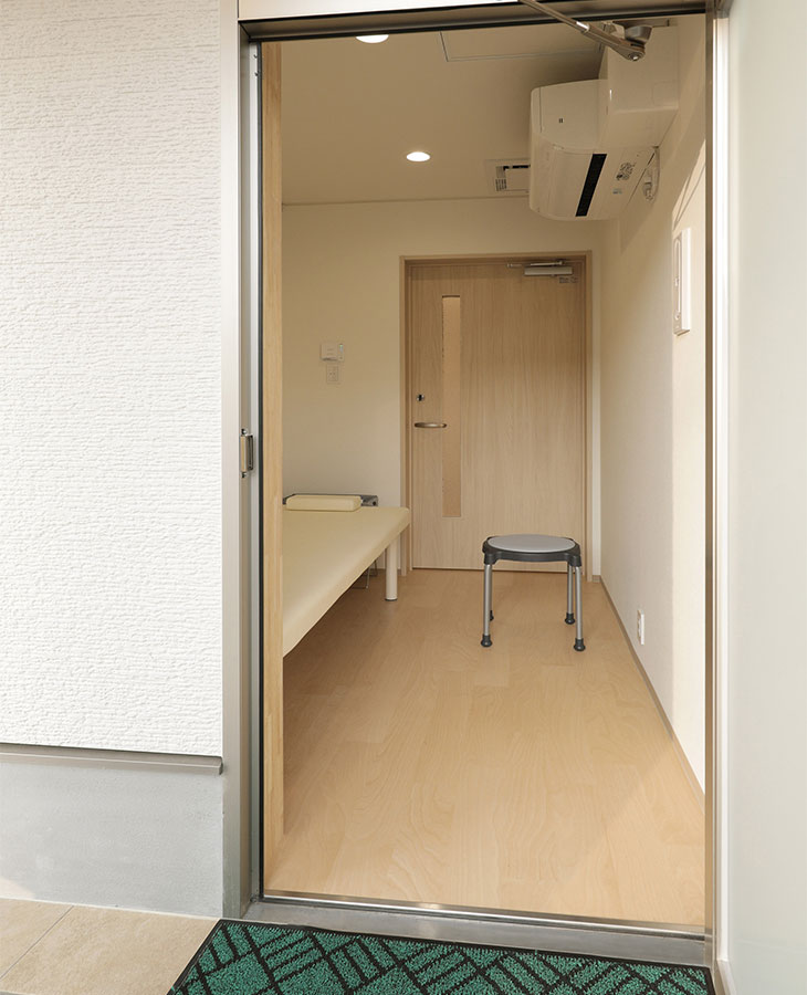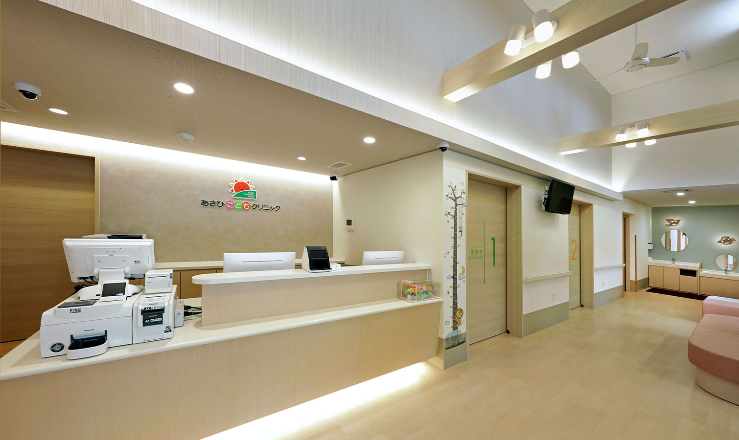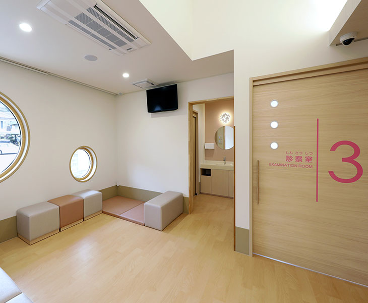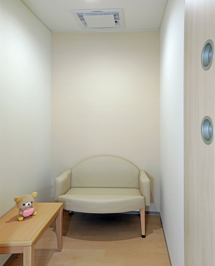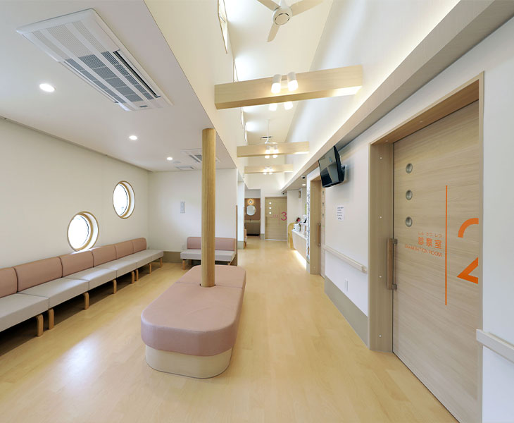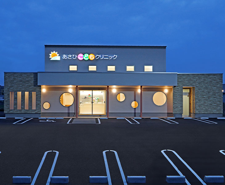 院内ご案内 外観 正面 クリニック ロゴ 夕景 受付 待合室 一般診察待合室 一般診察待合室 予防接種・健診待合室 診察室 診察室①(一般診察) 診察室②(一般診察) 診察室③(予防接種・健診用) 処置室 その他 授乳室 隔離室 トイレ